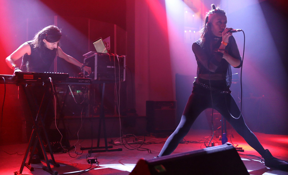 Ya entrada la madrugada y para concluir el festejo, la connotada propuesta experimental, industrial y de vanguardia Oxomaxoma, encarnada actualmente por José Álvarez (voz), Rabdoll (guitar war) y Bishop Murillo (voz, samplers y secuencias), arrancó sin preámbulos su estridencia.