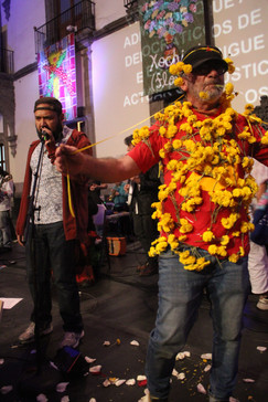 El homenaje continuó con lecturas de poesía en voz de David Rojas Azules, Gonzalo Vélez, Eduardo Vázquez, Antonio Calera Grobet, Florina Piña, Julio Muñoz Rubio,José Springer etc. Vino luego el canto de Gabino Palomares, Guillermo Briseño, Anastasia Guzmán -Sonaranda- y el fantástico guitarrista Eblen Macari; también el reconocimiento del colectivo Llegó la Hora de los Pueblos y de NO VIVIMOS DEL APLAUSO, las presentaciones de Irma Kundala y de la compañía Barro Rojo, así como los performances de César Martínez y Martín Rentería, quien presentó la pieza Abrazos de a-pollo, en la que los presentes fueron invitados a abrazarse, un auténtico apapacho colectivo.