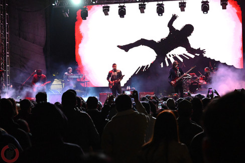 Ya entrada la noche, San Pascualito Rey tomó el escenario de forma imponente con luces estroboscópicas y esos acordes melancólico, eólicos característicos de San Pascualito Rey, la noche inicia con “Todo se Cae” para recorrer dos décadas y media de repertorio con temas que ya son parte del ADN del rock mexicano como “Caemos o Volamos”, “Beso de Muerto”, “No Voy a Dejar” y “Si te Vas”.